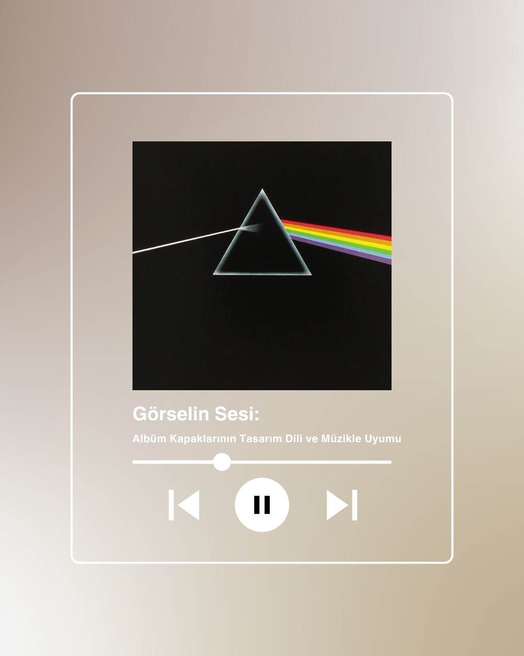 Müzikle Eşleşme: Pink Floyd’un bu albümdeki müziği; temiz synthesizer tonları, yankılı gitar soloları ve temiz prodüksiyon ile karakterizedir. Prizma, müziğin içindeki spektrumu temsil eder. Işığın kırılması, albümdeki temaların insan zihninde yarattığı kırılmaları sembolize eder.